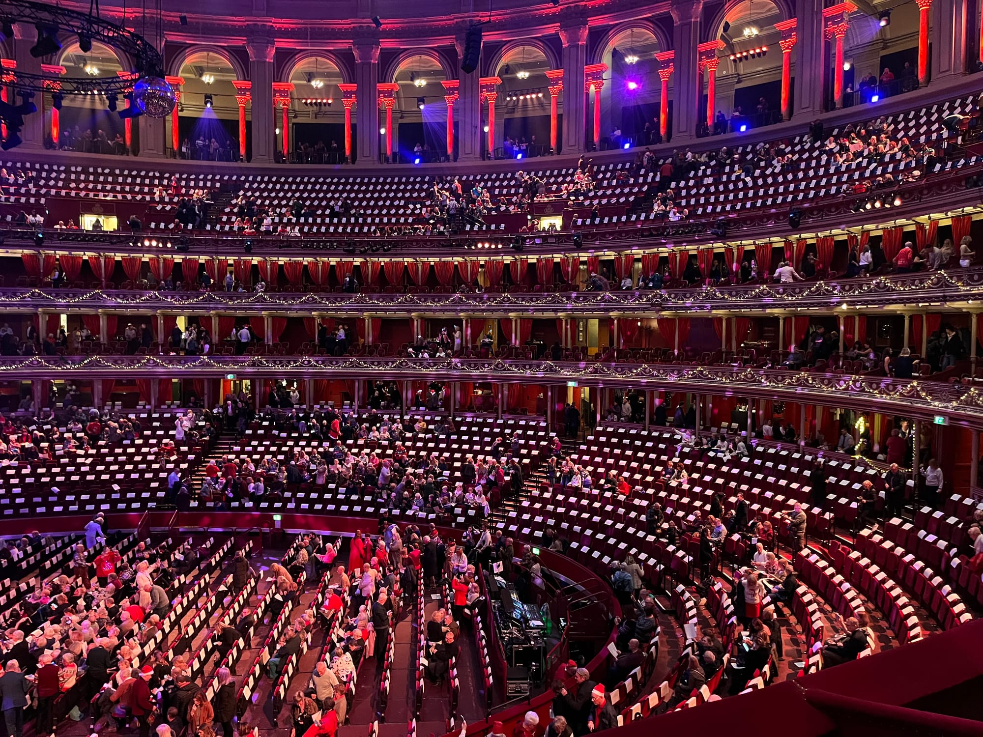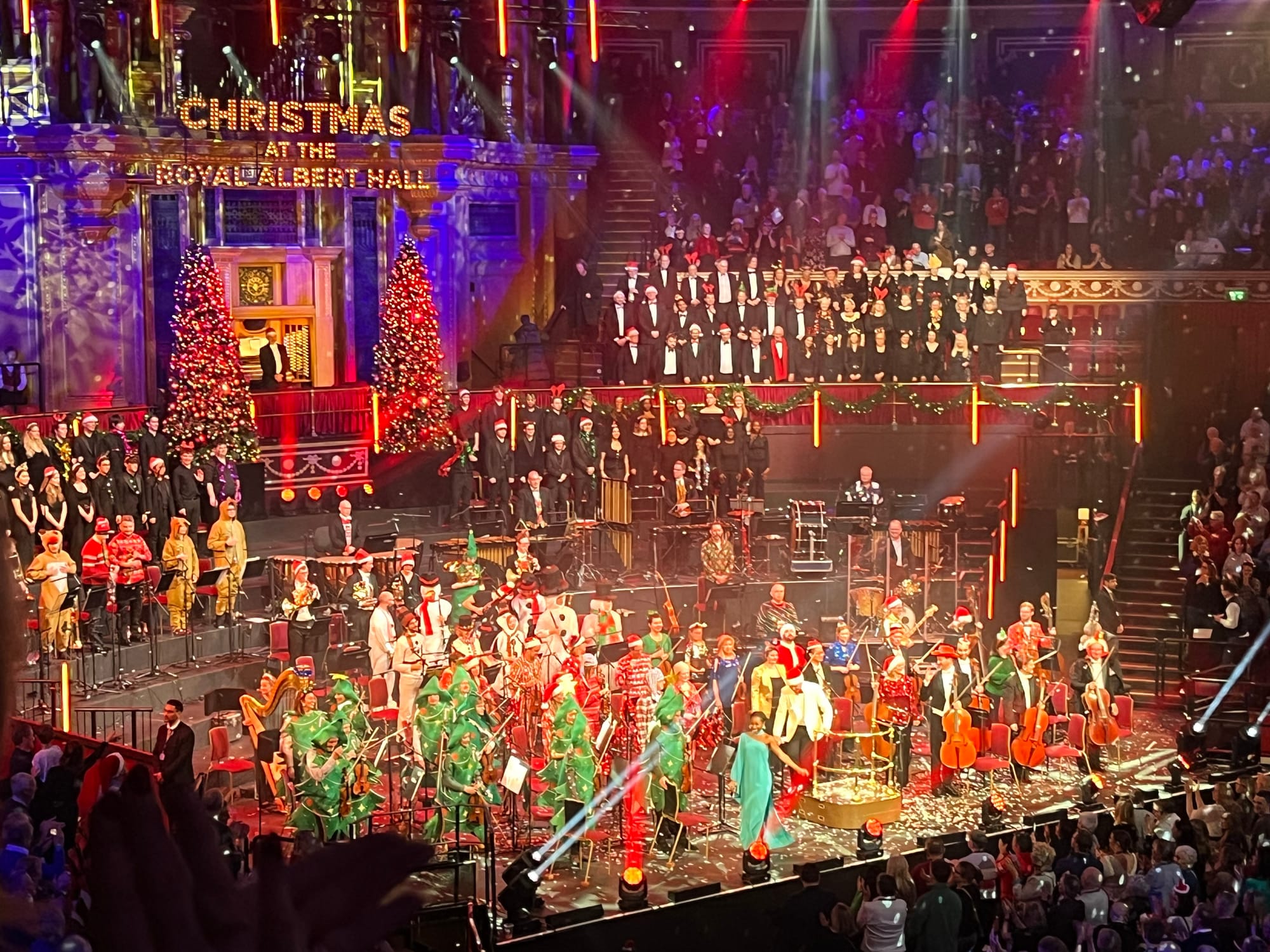 For us, the highlight of the week was our first ever trip to Royal Albert Hall, which must be one of the world's most renowned concert halls. The occasion was their annual "Carols At the Hall", an event so popular that we had to buy 2 single tickets in different sections months ahead. The program was presented by the Royal Philharmonic Orchestra, the Royal Choral Society and the National Youth Choir (with 8 military trumpeters thrown in for effect). All your Christmas favourites were performed, with the audience given song sheets to join in on 6 or 7 classics, including the 12 Days of Christmas. Sections of the Hall were given different parts to sing and the result was truly joyous. Just as amazing, enough to cause goosebumps, were the couple of times the two choruses joined together and were brought to full volume by the conductor. With close to 300 performers on the stage between the orchestra and choirs, in the ultimate acoustic environment, with songs you know and love, the effect was memorable. Their versions of two of my favourite carols, "Once in Royal David's City" and "Carol of the Bells" will be with me for a long time.