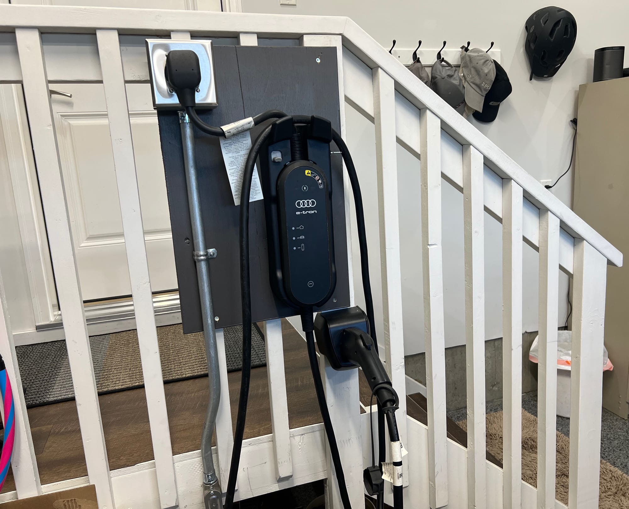 The Bottom Line: if much or most of your travel is local, if your average daily distance driven is usually relatively modest (say between 100 and 300 kilometers), and if you are able to charge at home, you will enjoy the experience most of the time. We installed a plug in the garage (pictured above) and I plug the car in to charge overnight 2 or 3 times a week. The convenience of that cannot be overstated, and will only get better when I'm able to avoid standing outside when it is -25 C and I need gas, poking at the keypad on the gas pump with gloved fingers or, worse yet, with exposed fingers. Every time I get into the car first thing in the morning after charging it overnight, I smile a bit smugly. Then I pull silently out of the garage.